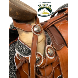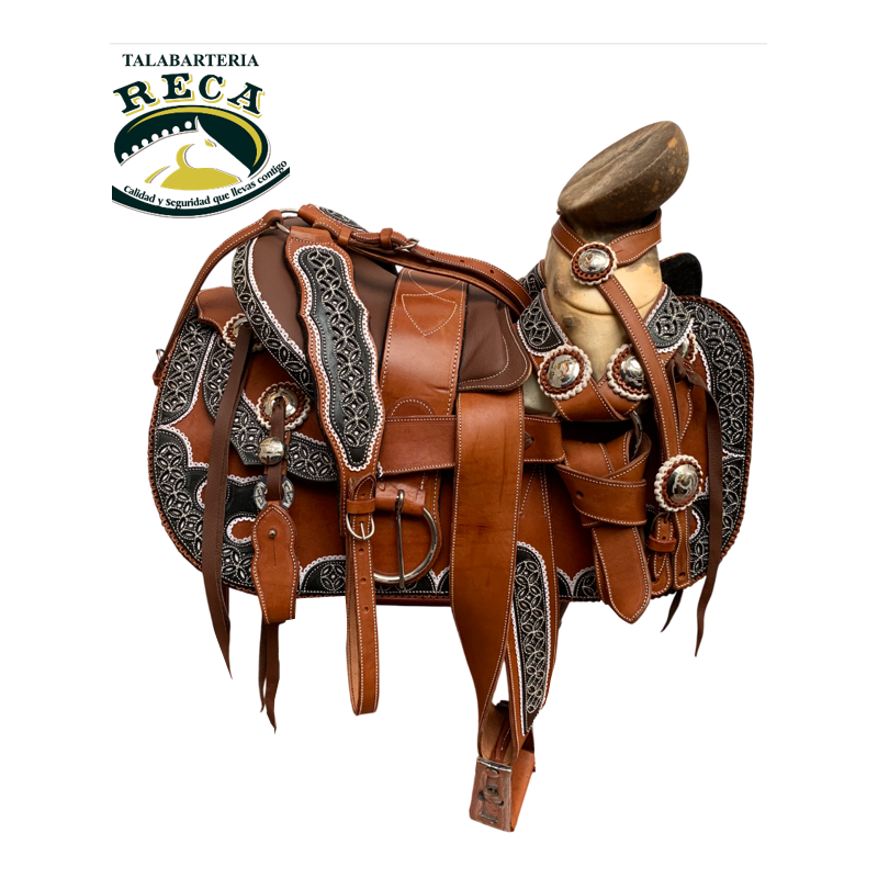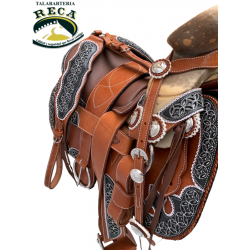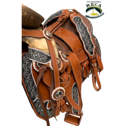 MNT175 - MONTURA CHARRA BASTO VOLADO CON FUSTE DE 15", BOLÓN CON TURMA Y HERRAJE DE ACERO
