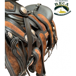 MNT160 - MONTURA CHARRA 16" PELO DE RES ATIGRADO CON HERRAJE DE ACERO